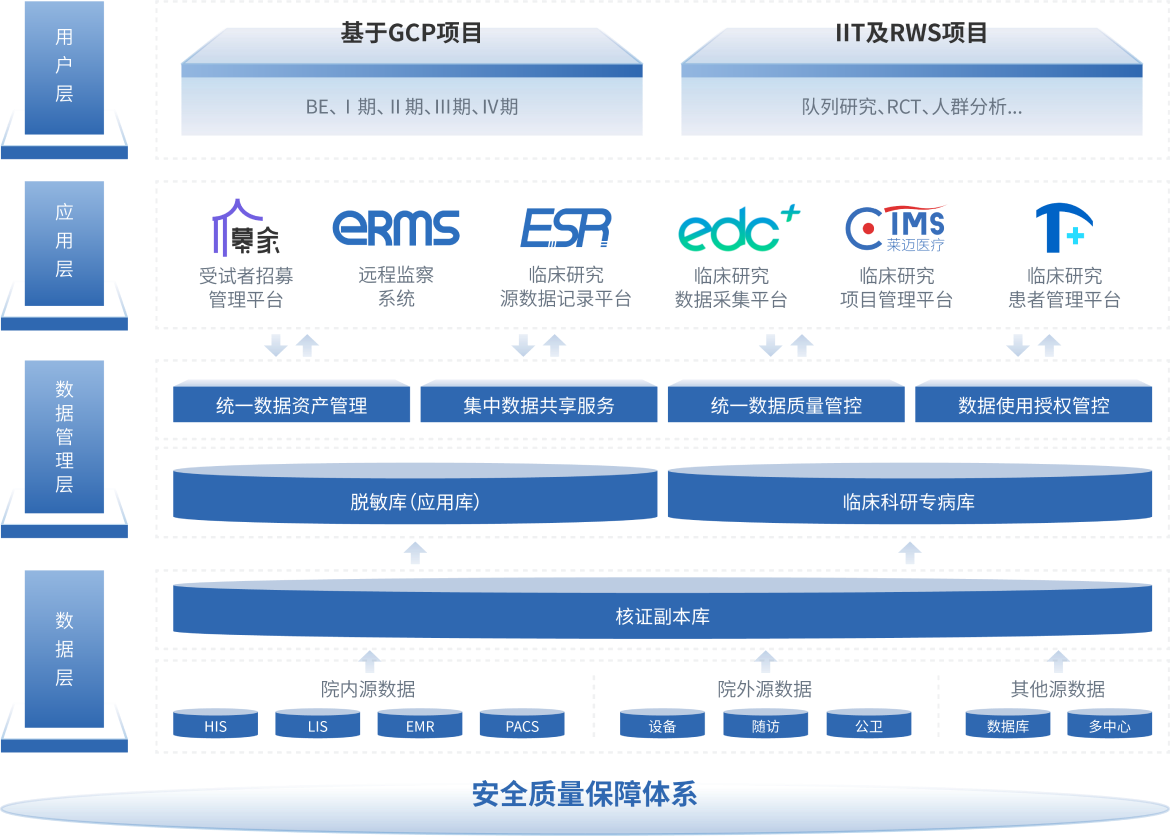 以自有的數(shù)字紙張及醫(yī)學(xué)NLP專利技術(shù)為基礎(chǔ)、利用人工智能和大數(shù)據(jù)技術(shù)構(gòu)建的全方位臨床研究數(shù)智一體化平臺(tái)。本平臺(tái)集數(shù)據(jù)采集/錄入、數(shù)據(jù)治理分析、數(shù)據(jù)溯源等數(shù)據(jù)管理到項(xiàng)目精細(xì)化全流程管理和患者多端(PC端、移動(dòng)端)管理于一體,支持包括了臨床試驗(yàn)(BE和Ⅰ-Ⅳ期),RWS、IIT等在內(nèi)的各種類(lèi)型的臨床研究,多角度及多維度實(shí)現(xiàn)臨床研究的數(shù)字化和智能化管理。
